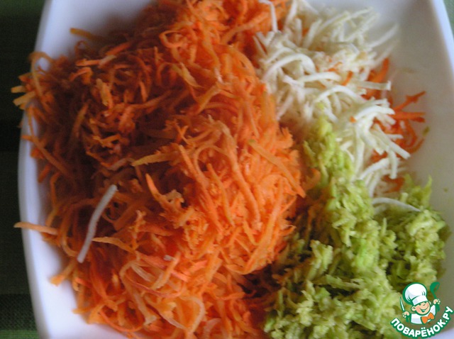 Морковь, корень сельдерея и авокадо натереть на мелкой терке. Если авокадо мягкий, нарезать на кусочки. Мне достался твердый, я не стала ждать, пока он дозреет, захотела, чтоб в салате все было однородно нарезано
