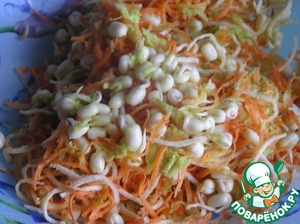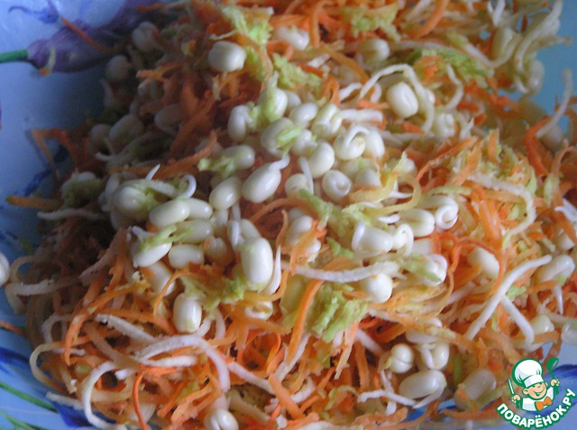 Смешать морковь, авокадо, сельдерей, пророщенный маш