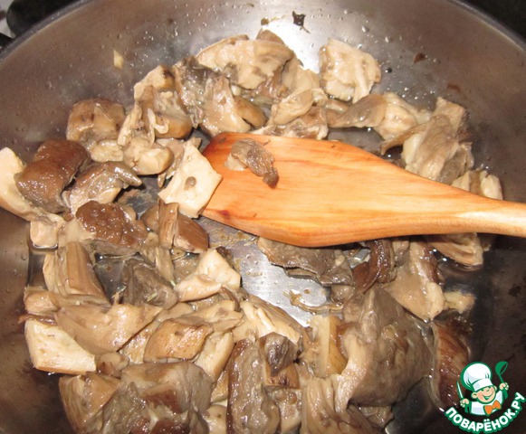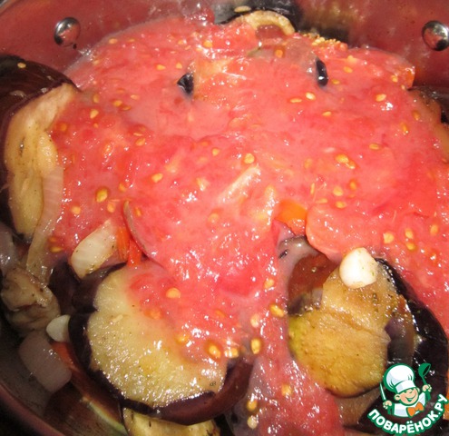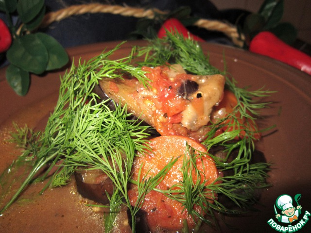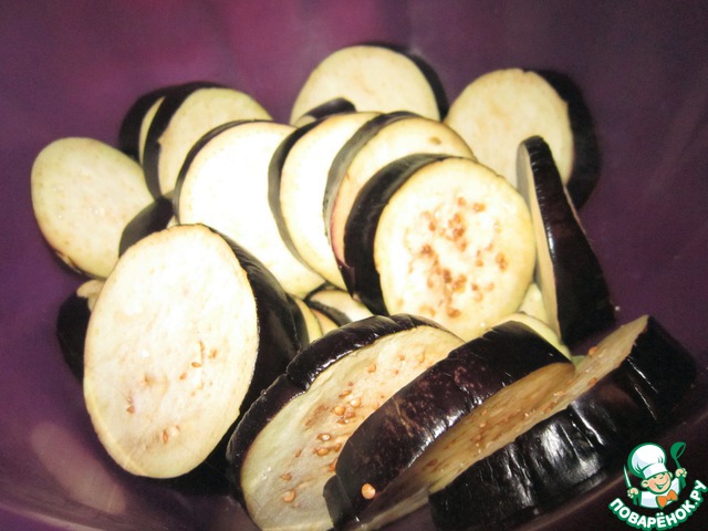 Баклажаны нарезать кружочками, предварительно посолить и через 20 минут отжать от горького сока. Обжарить.