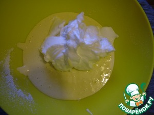 Охлажденные сливки взбить в мягкую пену (не в крем!).