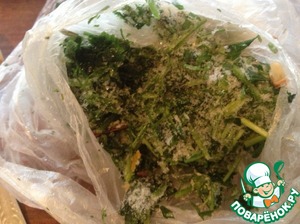 • В готовую гречку добавляем зелень, у меня нет в даннный момент свежей, поэтому я беру замороженную.