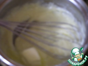 • Остудить до комнатной температуры, добавить сливочное масло, взбить до однородности