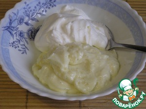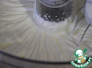 • В желтковый крем вмешать половину взбитых сливок