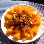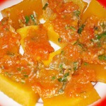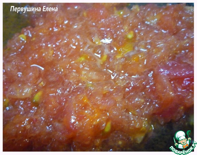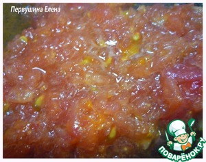 Немного его тушим - не более 5 минут (кстати, водичку, что осталась от тыквы, добавляем к помидору).
