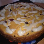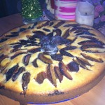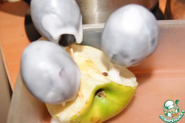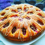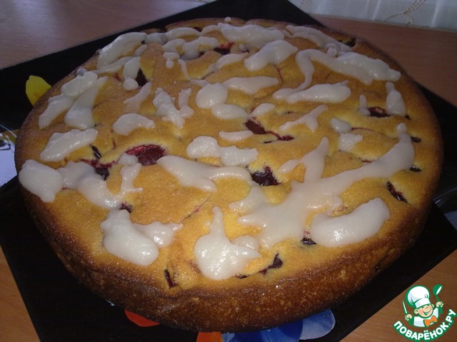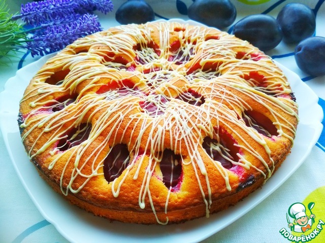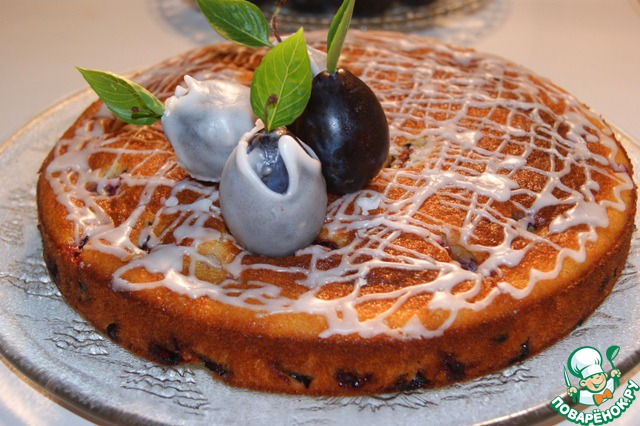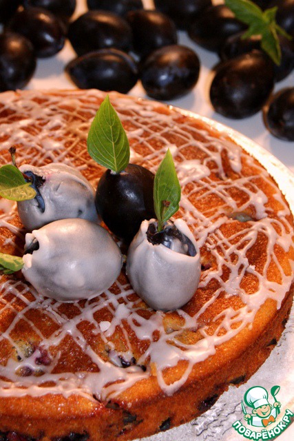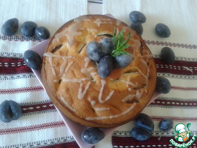 Украсить пирог можно целыми сливами, на которые нанести глазурь, и дать ей полностью высохнуть.