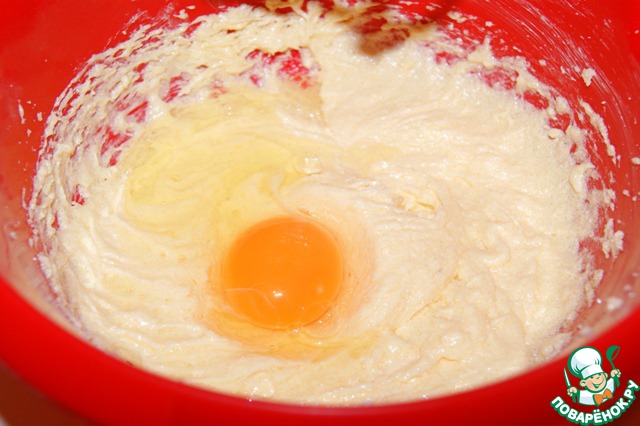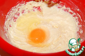 Взбить масло с сахаром и ванилью добела и, не переставая взбивать, ввести по одному яйца.