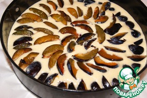 Поместить тесто в форму 24-26 см в диаметре, дно которой застелить пекарской бумагой. Сверху слегка вдавить сливу.