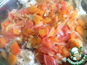 Когда наши овощи потушились минут 10, добавляем к ним мелко рубленный чеснок и тонко нарезанный полукольцами помидор, и тушим еще 5 мин