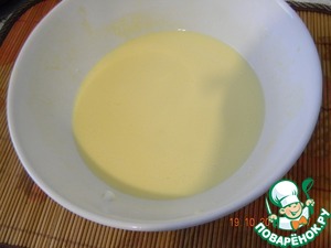 Яйца взбить и добавить сметану, продолжая взбивать. Сыр натереть на крупной терке.