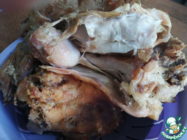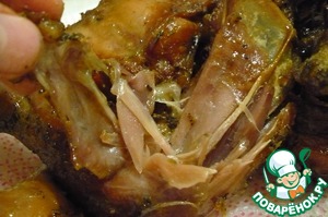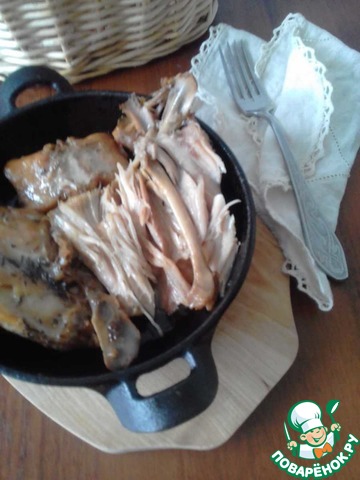 На фото я очень старалась показать, как мясо буквально разваливается на нити, обнажая косточку догола, но при этом хорошо сохраняя форму целых кусочков, что делает очень удобной подачу такого мяса - и эстетично, и очень удобно есть. Надеюсь, что это видно.