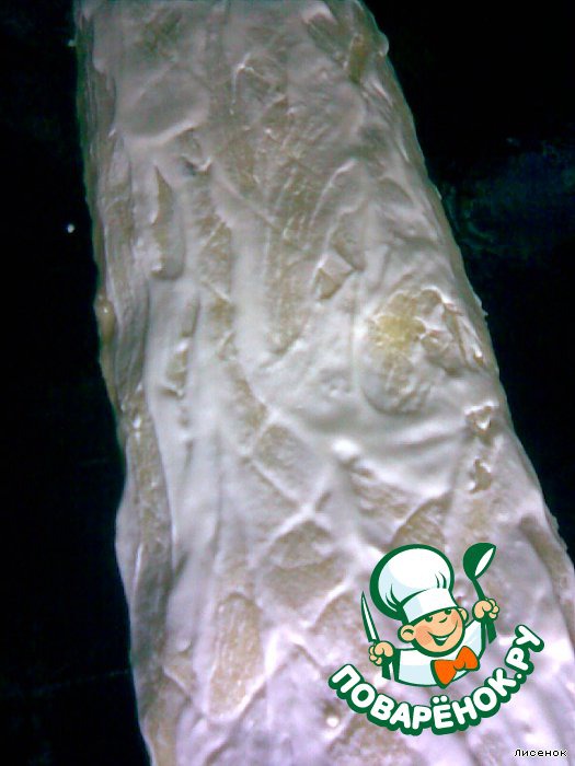 Перенести аккуратно на противень, смазанный жиром (маслом), швом вниз.