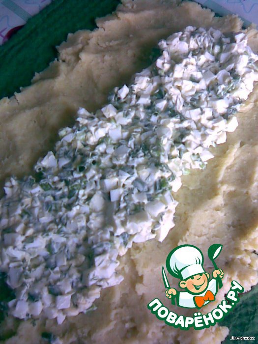 Посередине положить начинку, и с помощью полотенца соединить края. -