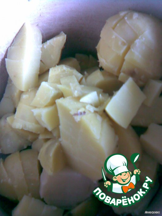 Почистить, остудить немного, порезать на кусочки и истолочь ступкой.