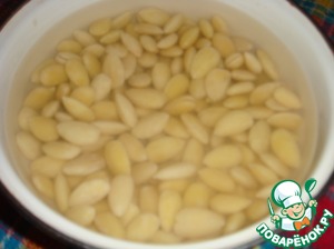 Залить очищенный миндаль холодной водой и оставить на 8 часов, или на ночь.