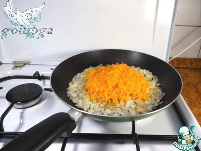 Добавляем к луку морковь. Жарим слегка, не зажариваем. -