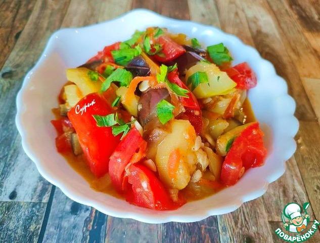 Овощное рагу можно применить как гарнир к мясному блюду или как закуску.