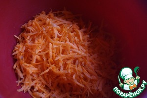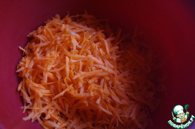 Большую морковь помыть, почистить и натереть на крупной тёрке в глубокую миску.