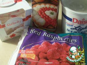 На малину измельченые конфеты "Рафаэлло" и остальной крем. -