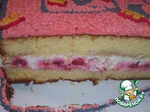пропитаный нижний корж мажем кремом, потом малина вдавливаем в крем.