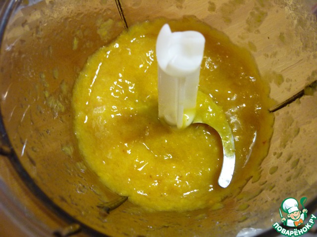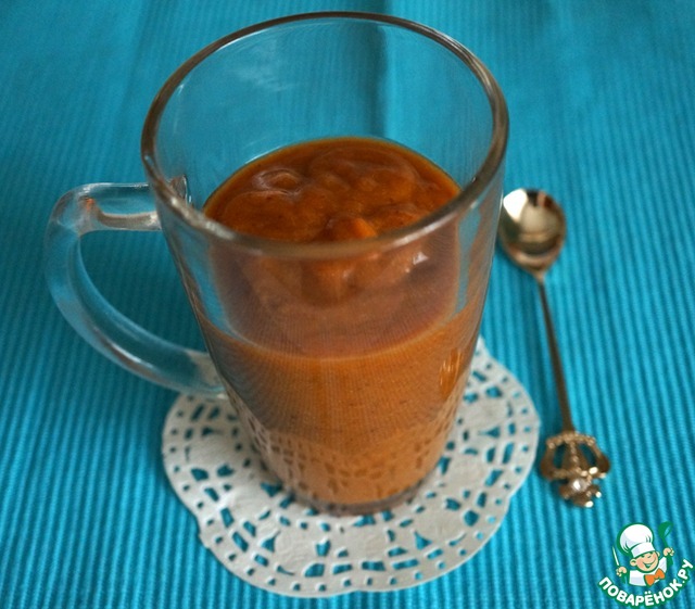 Курагу с зеленым чаем пюрируем при помощи блендера