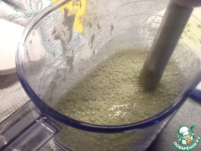 Положите в блендер и добавьте молоко. Смешивайте постепенно, следите за тем, чтобы куски яблока не застряли в винте.