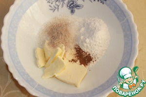 Для приготовления штрейзеля смешать муку, сахар, специи и масло, растереть в крошку и отправить в холодильник