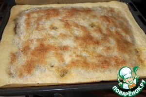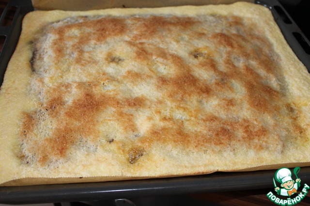 Берем форму 30х40. Застилаем бумагой. У меня лист с бортиками. Выкладываем тесто. Разравниваем.