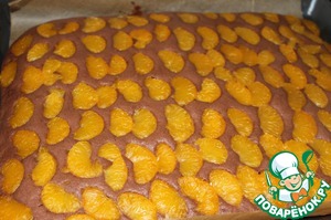 Мандарины из банки процедим. И кладем их на тесто.