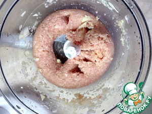 К получившейся смеси добавим фарш и все смешаем. Я делаю это тоже в блендере.