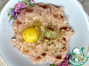 Затем добавляем яйцо, соль и специи. Все перемешиваем.