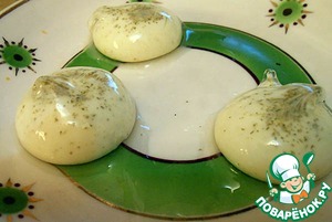 Уложить по 3-4 йогуртовых шарика в каждый салатник, очень осторожно, стараясь не повредить оболочку.