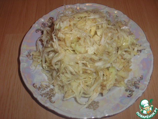 Нашинковать капусту. Слегка посыпать солью и перетереть