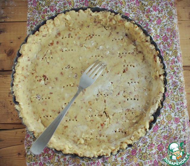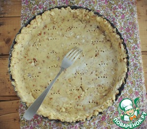 В смазанную маслом форму выложите пласт теста, выровняйте края.