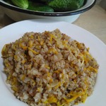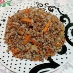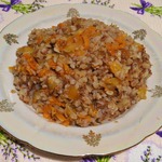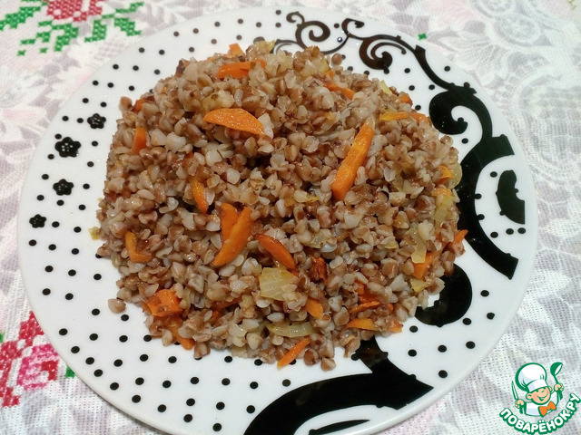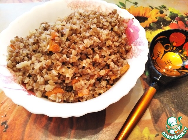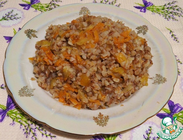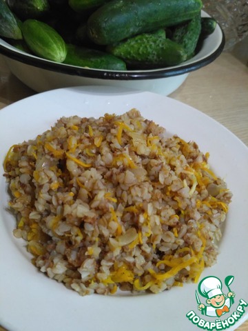 В гречку добавляем лук с морковью и натертый на терку чеснок, и даем настояться минут 20.