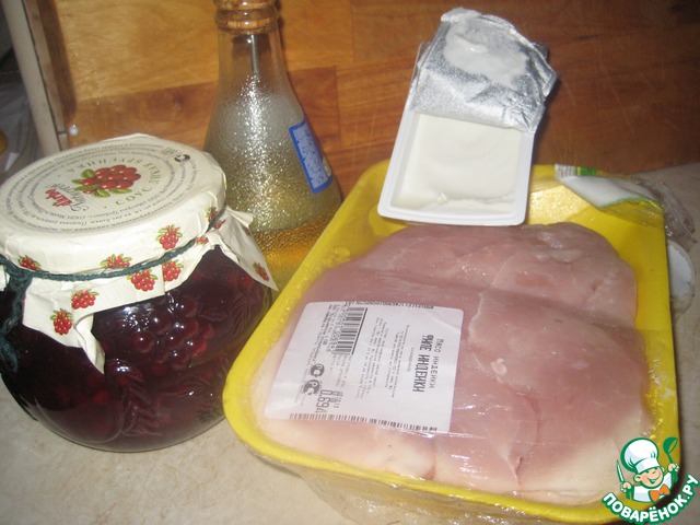 Мясо получается нежным, вкусным. Плавленый сыр перемешивается с соком мяса и брусничным соусом. Просто сказка! |