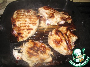 Перевернув один раз. Не волнуйтесь, если филе изнутри будет розовым - это от соуса. |