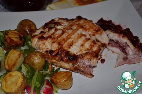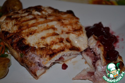Описание: Нежное мясо индейки, фаршированное мягким козьим сыром и брусничным соусом. Готовится это блюдо очень быстро, и получается очень вкусно, нежно и красиво. Ваша индейка безусловно станет украшением стола!