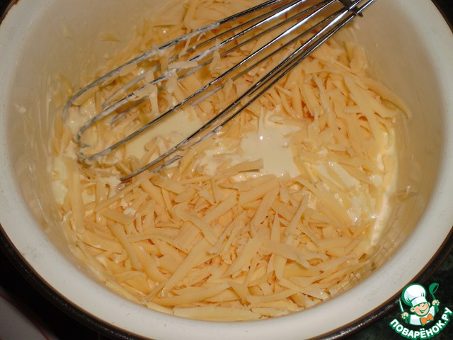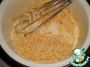 Яйца взбить со сметаной и сыром.