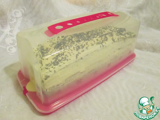 В последнее время я просто фанатею от прямоугольной выпечки, поэтому и сделала манник в том виде, который вы видите на фото)). Я даже форму для хранения тортов купила соответствующую: