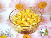 Выкладываем в миску кусочки фруктов, перемешиваем.