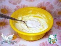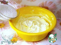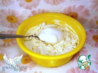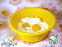 А желтки кладем в миску с творогом. Половину желтка оставить для смазывания верха запеканки.