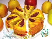 Выкладываем массу в форму. Смазываем желтком, украшаем нарезанной сливой, (но это не обязательно), посыпаю её корицей, можно сахарной пудрой.