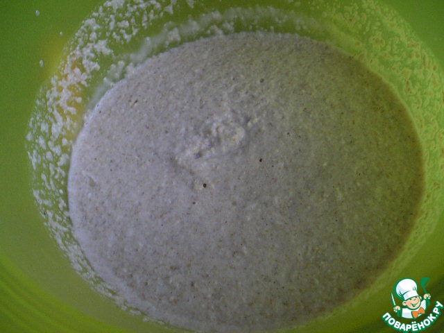 Смелите кофемолкой овсяные хлопья в крупку, отмерьте 1,25 стакана и залейте их приготовленной пахтой, добавьте 1/4 ч. л. соли.