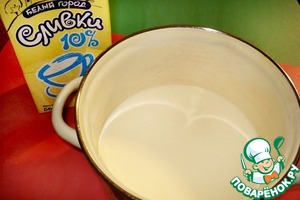 Выливаем сливки в кастрюлю и доводим до кипения.