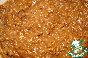 В конце добавляем сливочное масло. Рисово-шоколадная масса не должна растекаться.