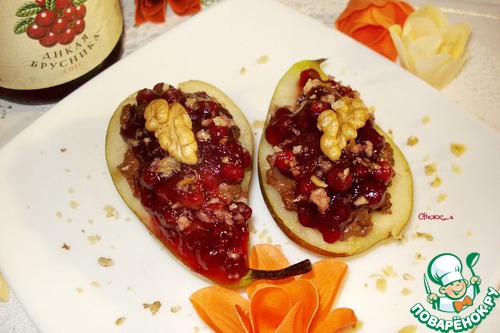 А ещё можно такой рис подать как отдельное блюдо с нарезанными кусочками фруктов! А можно, как у меня, в половинках груши, с брусничным соусом и посыпанными орехами! Мммм! Сказочно вкусно!