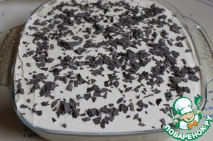 Верх украшаем тертым шоколадом. Убираем на ночь в холодильник.