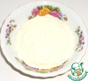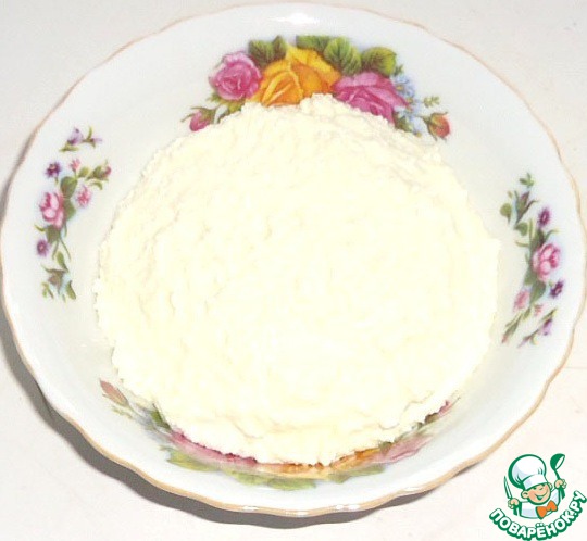 Творог протереть через сито, добавить сметану, сахарную пудру и хорошо перемешать, должна получиться творожная масса типа крема.