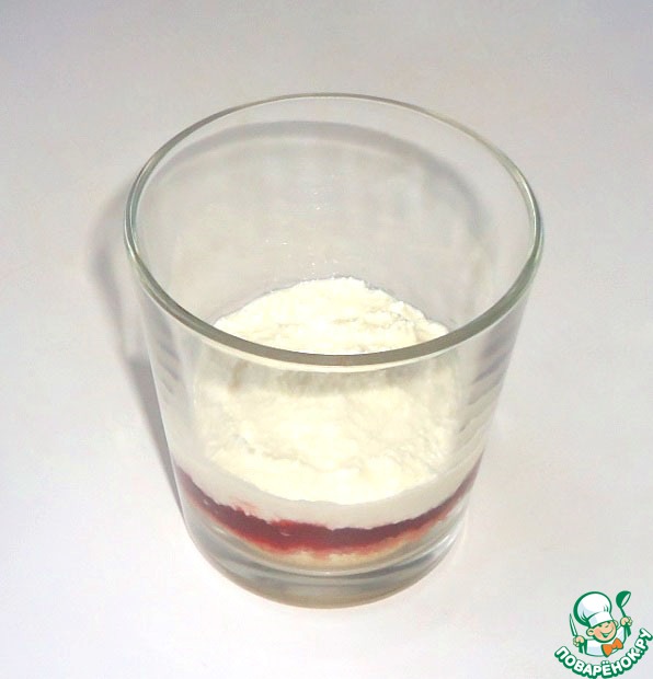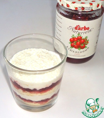 Рецепт «Слоёный десерт с клюквенным соусом»: