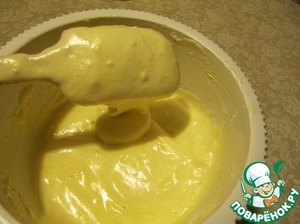смешать желтки и белки, добавить просеянную муку, осторожно, но тщательно перемешать. -